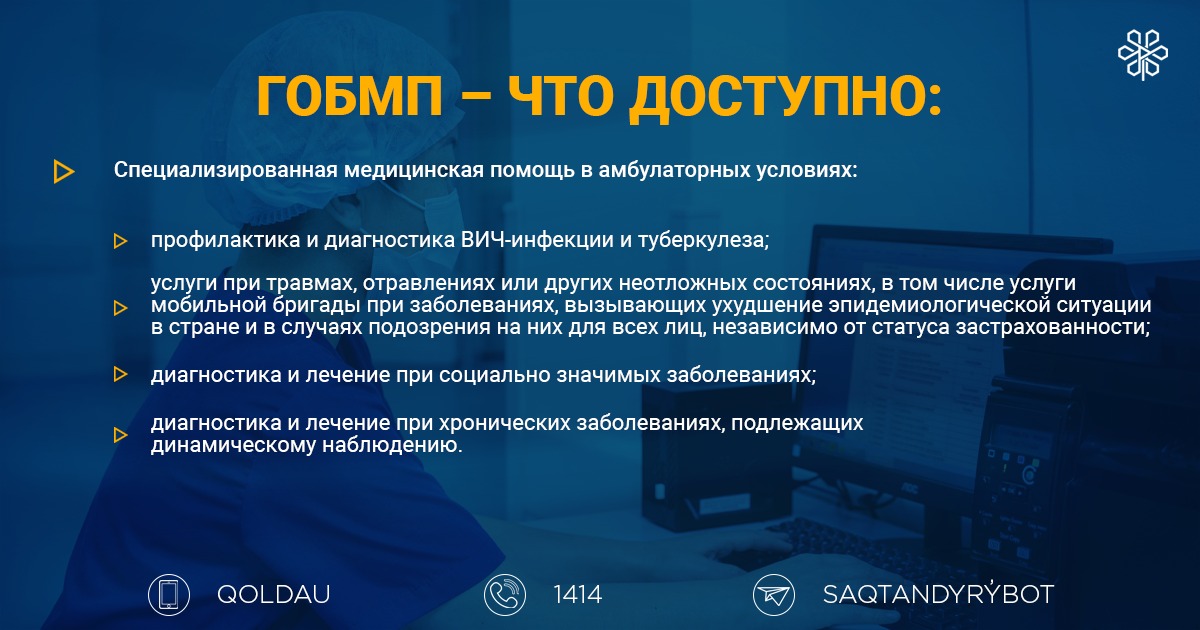 Медицинская помощь оказывается при предоставлении документа, удостоверяющего личность либо электронный документ из сервиса цифровых документов (для идентификации) посредством мобильных приложений: eGov mobile/ Kaspi.kz – госууслуги — цифровые документы.